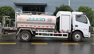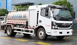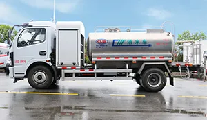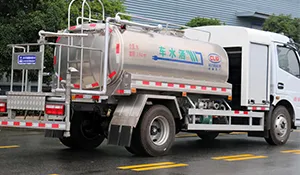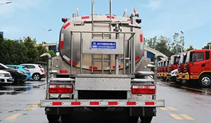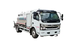 The mounted tank has a 5 m³ capacity made of high-quality alloy material, with an aluminum alloy rear platform and side guards. Equipped with 40–50 m³/h water pumps, fully automatic front flush, rear spray, and high-pressure cannon, all functions are operable with a one-button control from the driver’s cab. The high-pressure cannon has a range of over 35 meters.